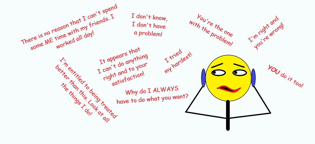 You believe that the problem is the other person’s fault. You feel you have not contributed to “the problem”, and that it is entirely the other person’s fault.