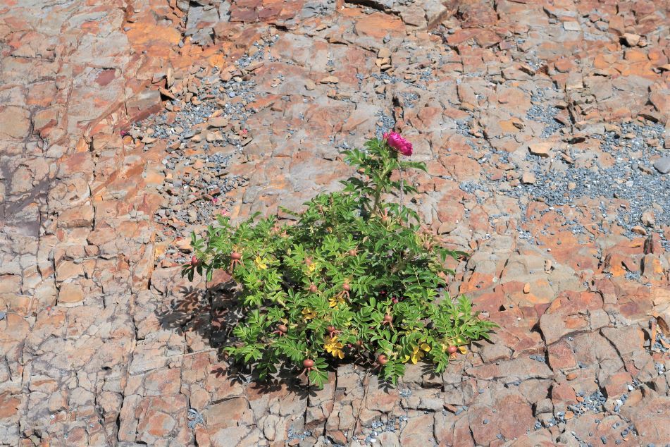 This wild rose plant seen here did not try to grow in the ledge, it just did!